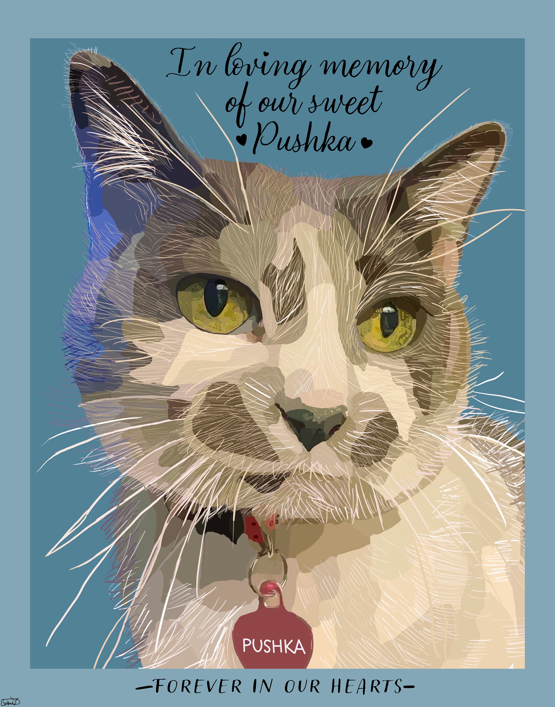 This project features four of my best digital pet portraits from my summer freelance work. Each piece was custom-made based on client input, combining illustration and personalization to capture each pet’s personality.